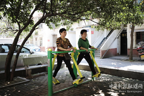居民在安居坪里鍛煉身體。(唐蘭榮攝)