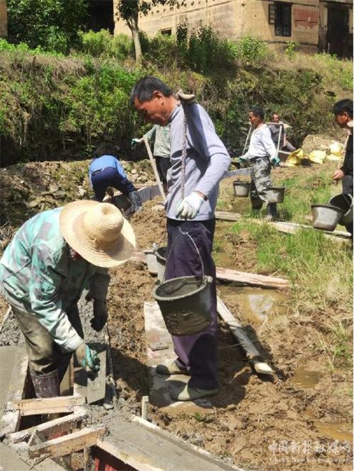 鎮(zhèn)村干部深入現(xiàn)場要求他們:“一要趕進度,短雨不停工;二要重質(zhì)量,材料全都真;三要村監(jiān)督,常來現(xiàn)場看。”