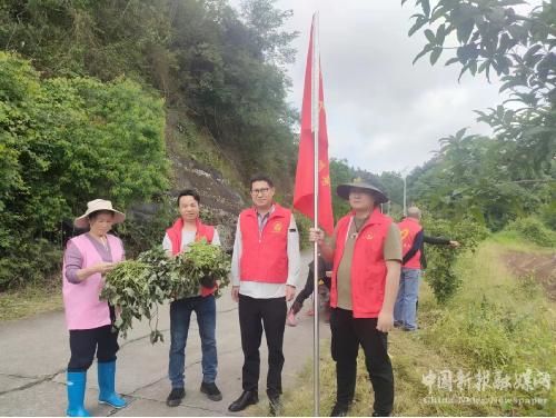 當(dāng)天,村里從千里之外的安微省引進(jìn)10萬株薯秧苗,村干部、駐村工作隊(duì)、黨員、組長和村民100余人,高舉志愿者隊(duì)旗,身穿紅馬甲,開展插薯秧苗的集體義務(wù)勞動(dòng)。