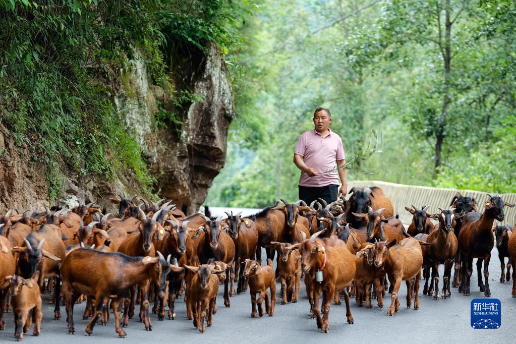 5月24日,南江縣高橋鎮(zhèn)桅桿村村民岳峰龍準(zhǔn)備將南江黃羊趕到附近山上放牧。當(dāng)?shù)胤e極探索“借羊還羊”模式,龍頭企業(yè)將南江黃羊公羊和能繁母羊捐贈(zèng)給鄉(xiāng)鎮(zhèn),由鄉(xiāng)鎮(zhèn)將黃羊借給村集體飼養(yǎng),待黃羊種群數(shù)量穩(wěn)定提升后,村集體將所借黃羊如數(shù)返還鄉(xiāng)鎮(zhèn)。