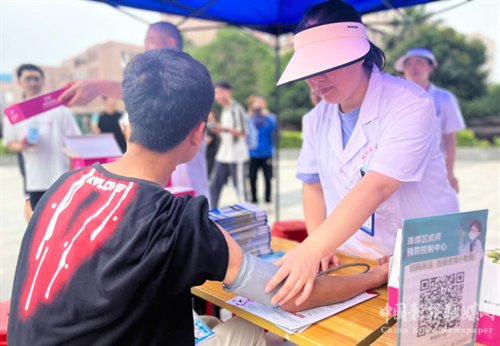 黨員志愿服務(wù)團(tuán)隊(duì)免費(fèi)為參加活動(dòng)的學(xué)生們提供了血壓測(cè)量等義診和咨詢服務(wù)。