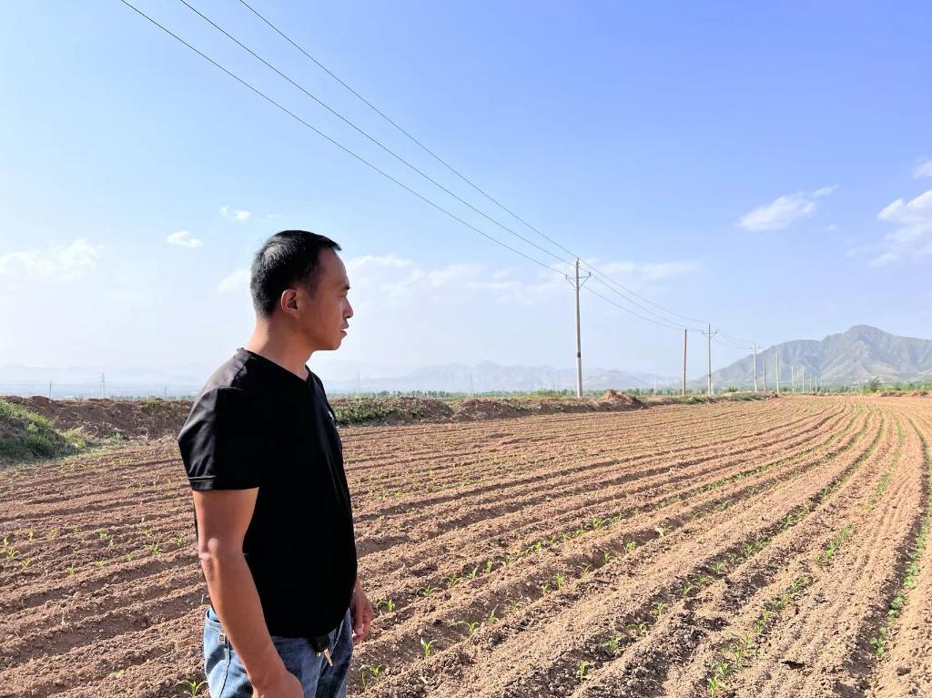 李志杰在地里察看秧苗。新華社記者 馬曉潔 攝