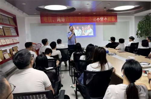為吸取公司2023.1.10電信詐騙事件的教訓(xùn),進(jìn)一步增強(qiáng)員工對(duì)電信網(wǎng)絡(luò)詐騙的辨識(shí)力和防范力,5月20日開(kāi)始,湖南鴻齊電力建設(shè)有限公司各機(jī)構(gòu)依次開(kāi)展“反電信網(wǎng)絡(luò)詐騙”培訓(xùn)。長(zhǎng)沙本部特邀請(qǐng)到金盆嶺派出所劉所長(zhǎng)擔(dān)任主講人,劉所長(zhǎng)結(jié)合真實(shí)案例,詳細(xì)講解了電信網(wǎng)絡(luò)詐騙難打擊的原因、常見(jiàn)詐騙手段和防范措施等。