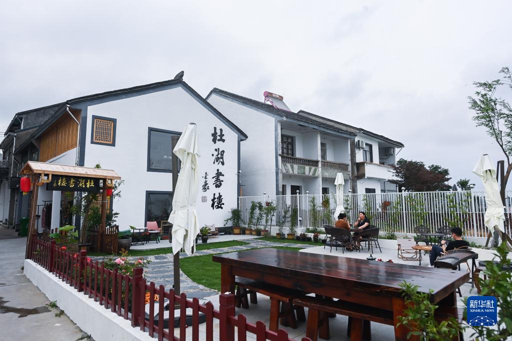 6月12日,游客在慈溪市觀海衛(wèi)鎮(zhèn)雙湖村的一家茶室喝茶聊天,雙湖村是一個(gè)坐擁三山兩湖的江南典型村落,東靠杜湖,南鄰白洋湖。近年來(lái),雙湖村努力打造成為獨(dú)具農(nóng)文融合的古村旅游目的地。該村獲得第七批中國(guó)歷史文化名鎮(zhèn)古村、浙江省美麗宜居村、浙江省美麗鄉(xiāng)村特色精品村等榮譽(yù)。