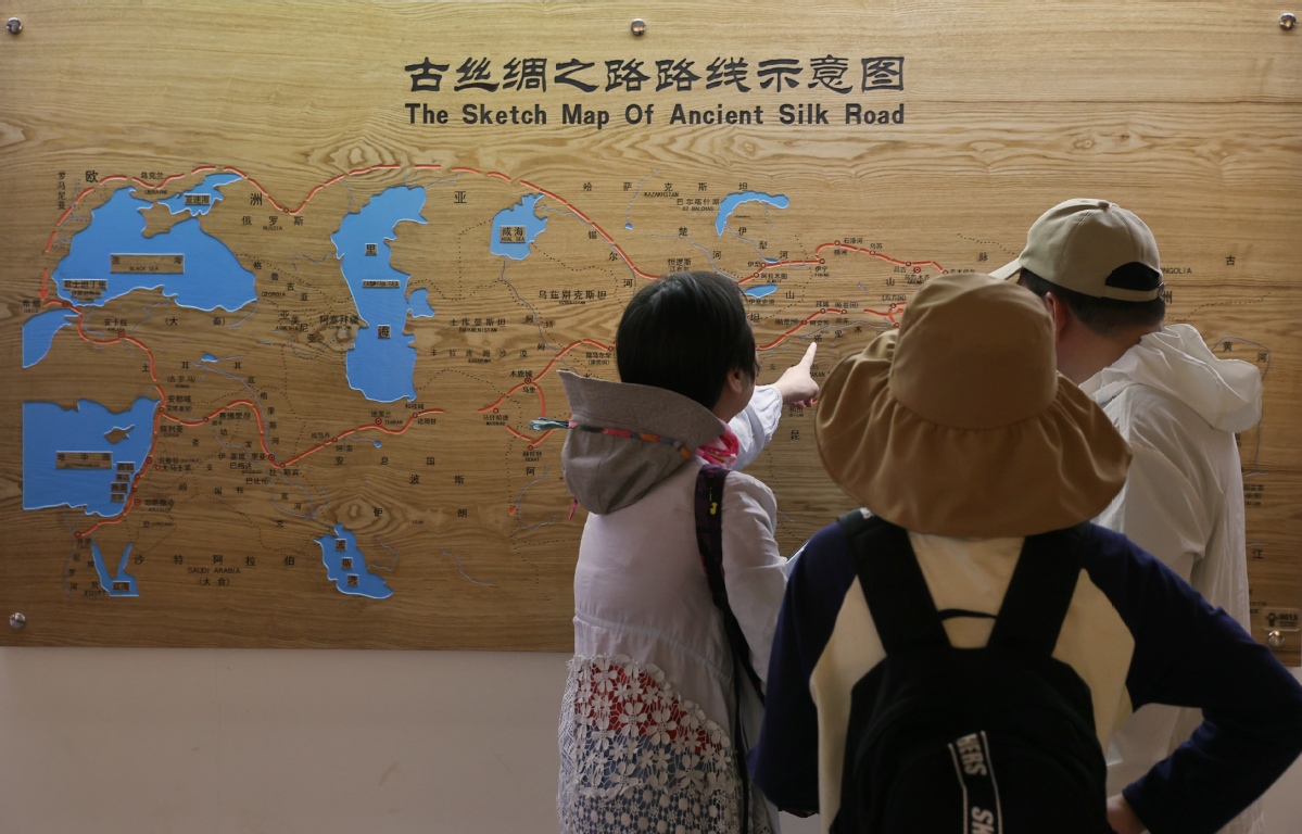 6月13日,游客們在陽關(guān)景區(qū)內(nèi)的陽關(guān)博物館文物展廳參觀。中國日報記者 姜東 攝