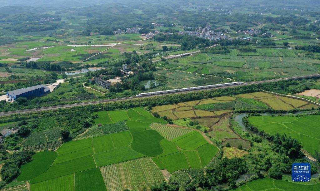 6月15日拍攝的鹿寨縣中渡鎮(zhèn)馬安村高標準農田(無人機照片)。
