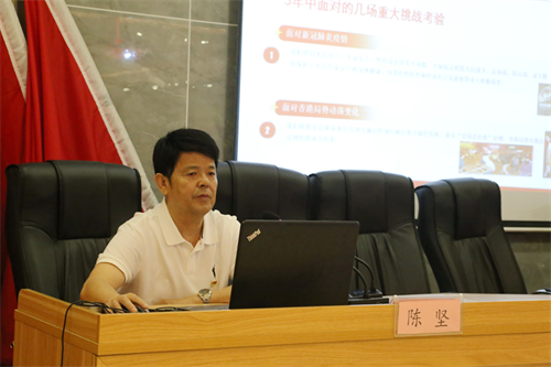 陳堅以《譜寫新時代中國特色社會主義更加絢麗的華章》為題,從8個方面對黨的二十大精神進(jìn)行了系統(tǒng)宣講和闡釋。就深入推進(jìn)黨的二十大精神在岳陽落地落實的話題,他引經(jīng)據(jù)典、深入淺出,用大家聽得懂的語言、喜聞樂見的方式和大家進(jìn)行交流分享,教育引導(dǎo)廣大基層黨員堅定不移感黨恩、聽黨話、跟黨走。在場的黨員們?nèi)褙炞ⅰ⒄J(rèn)真聆聽、做筆記?,F(xiàn)場掌聲熱烈。