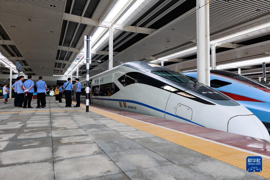6月26日,55311次試驗(yàn)列車在貴陽(yáng)北站等待出發(fā)。