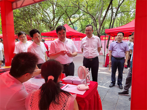 6月18日上午,道縣2023年百日千萬招聘專項行動首場專題活動——“道‘舟’迎老鄉(xiāng)·道‘商’回故鄉(xiāng)·道‘崗’建家鄉(xiāng)”活動拉開帷幕。道縣縣委書記李天明,縣委副書記、縣長唐超學等縣級領導前來視察現場工作,詳細了解企業(yè)招聘流程及現場招聘情況,叮囑有關部門要做好做細就業(yè)工作。此次活動現場設立30個招聘專區(qū)、6個政策專區(qū)和1個志愿服務專區(qū),57家企業(yè)參與此次活動,崗位涉及電子信息、輕紡制鞋、裝備制造、生物科技、家政育嬰等5大類27小類?;顒赢斕?,通過“線上+線下”同步招聘的模式,提供崗位數量近四千人,發(fā)放道縣惠企口袋書、企業(yè)招聘手冊等各類宣傳冊共計六千余份,“道州就業(yè)”直播間在線人數最高達一千余人;已初步達成意向人數640余人,其中高校畢業(yè)生等青年群體達成就業(yè)意向百余人。