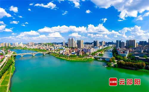 天藍(lán)云白,河流鐵路交匯,城區(qū)邵水河一帶城市風(fēng)光如畫。唐明業(yè) 攝