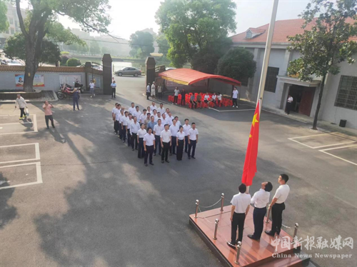 7月1日早上八點(diǎn),衡陽(yáng)縣庫(kù)宗橋鎮(zhèn)黨委政府舉行了莊嚴(yán)的升國(guó)旗儀式?。ɡ钚∪A 夏倩)
