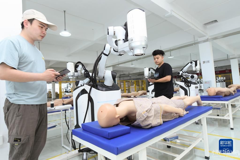 7月4日,在位于仙居縣的浙江千域智能科技有限公司,工作人員調(diào)試一款智能艾灸機(jī)器人。