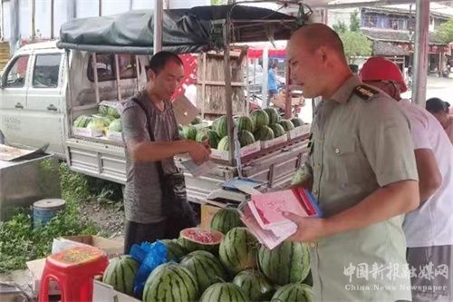 7月5日,湖南省邵陽市綏寧縣關(guān)峽苗族鄉(xiāng)黨委政府組織干部在集市門店開展征兵宣傳活動,激發(fā)適齡青年積極投身綠色軍營熱情,激發(fā)廣大青年“戎裝夢”,全力吹響2023年下半年征兵“集結(jié)號”。