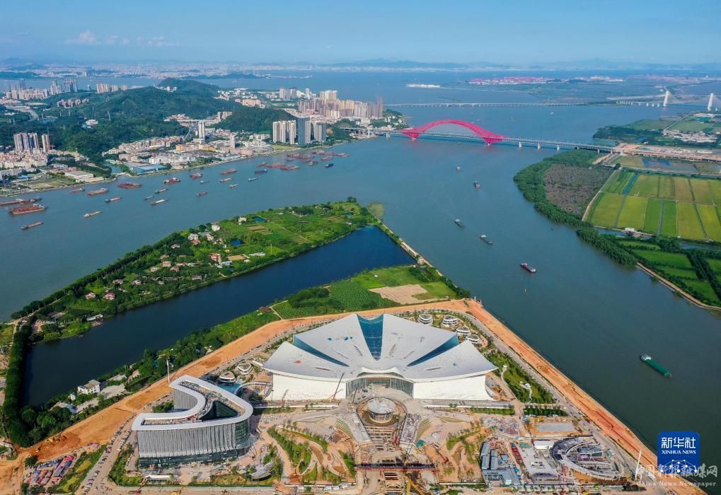 空中俯瞰位于廣州市南沙新區(qū)橫瀝島尖的國際金融論壇(IFF)永久會址,宛如迎風(fēng)綻放的木棉花(無人機(jī)照片,7月10日攝)。