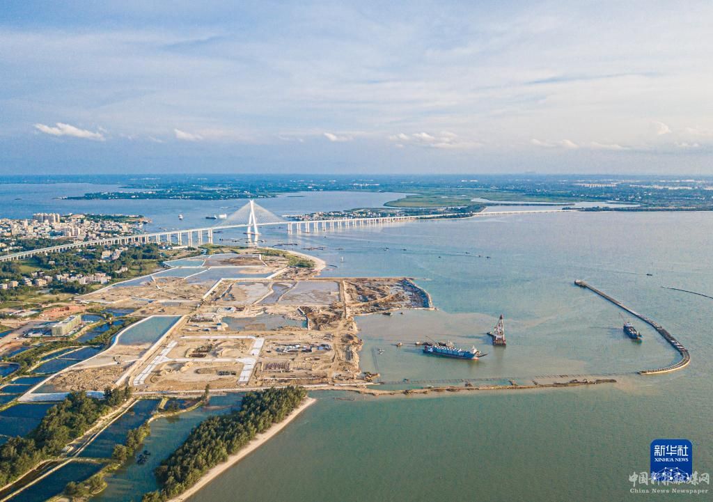 7月14日拍攝的建設(shè)中的文昌鋪前中心漁港項目(無人機照片)。