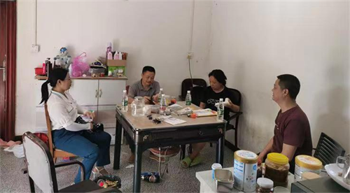 灣頭橋鎮(zhèn)黨委副書記,鎮(zhèn)長張仕彥(左二)帶領(lǐng)鎮(zhèn)政府干部在同京潔手袋廠負(fù)責(zé)人唐艷波商談解決企業(yè)困難方案。