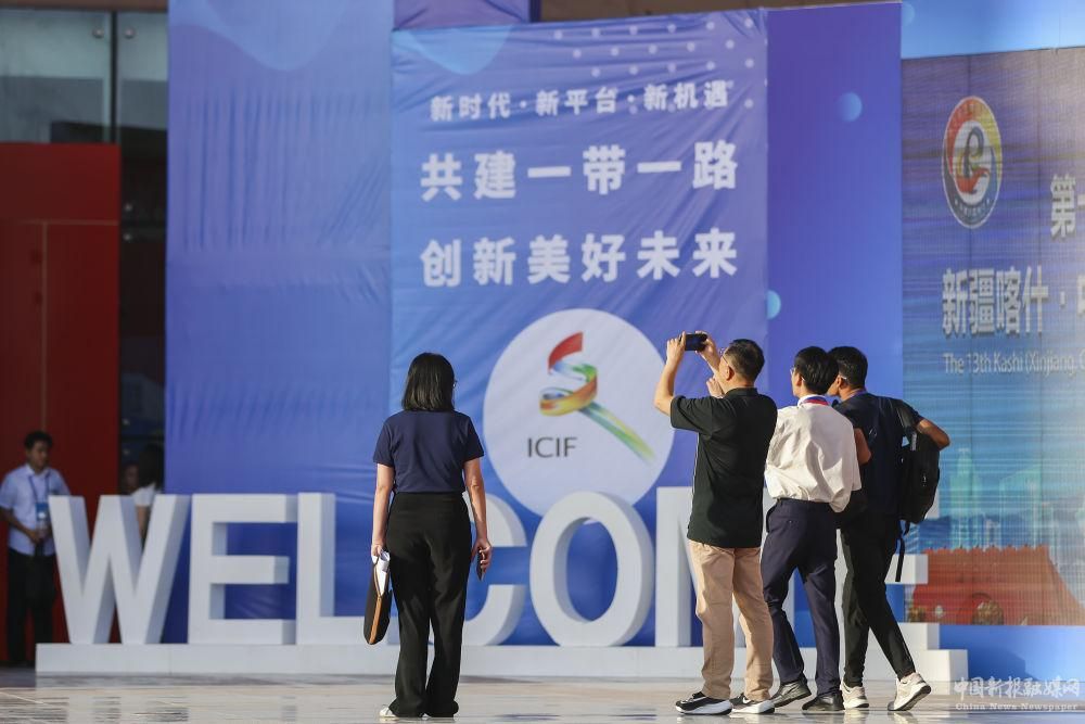 第十三屆中國新疆喀什·中亞南亞商品交易會(huì)在喀什國際會(huì)展中心開幕,這是參觀者在喀什國際會(huì)展中心拍照(6月21日攝)。新華社記者 郝昭 攝