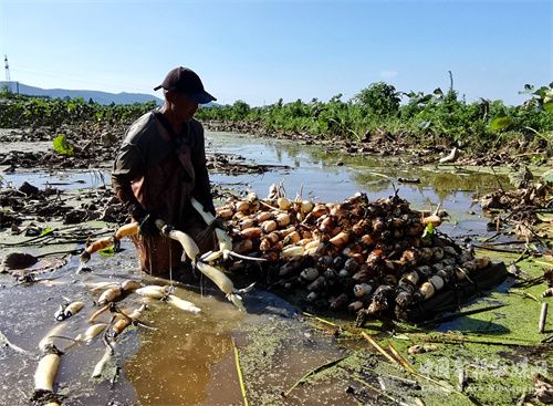 2023年8月2日,安徽省合肥市廬江縣白湖鎮(zhèn)裴崗社區(qū)的藕農(nóng)正在藕塘里采收蓮藕,無污染的生態(tài)蓮藕贏得了市場的青睞。