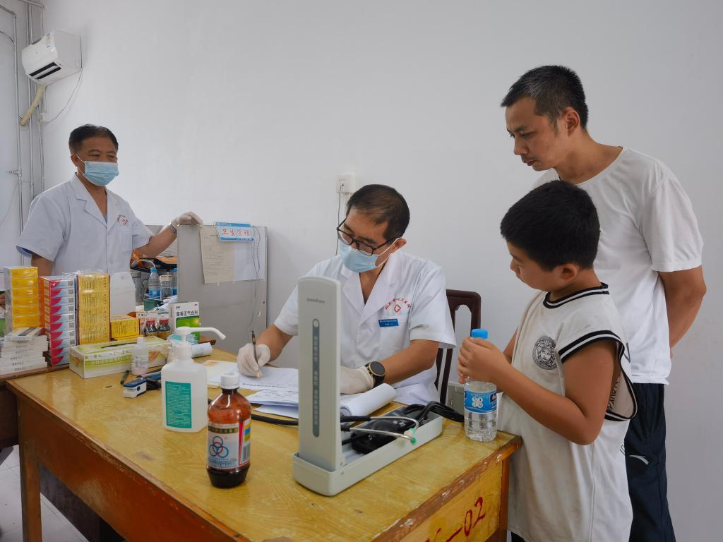 在這個高峰期曾同時容納周邊超過5000名受災(zāi)群眾的防汛臨時安置點,經(jīng)驗豐富的劉彥光和其他20余名醫(yī)護(hù)人員幾天來24小時輪班值守,累計接診200余人次。由于部分患有慢性病的群眾在轉(zhuǎn)移時沒有隨身攜帶常用藥,這里專門配備了降血壓、降血糖及心腦血管藥品。他們臨時辦公的校醫(yī)務(wù)室桌上,擺放著除顫儀、心電圖機(jī)等監(jiān)測和檢測設(shè)備。
