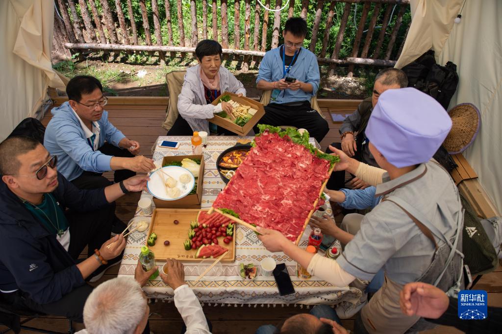 8月12日,游客在寧夏固原市涇源縣大灣鄉(xiāng)楊嶺村品嘗當?shù)孛朗场?/span>