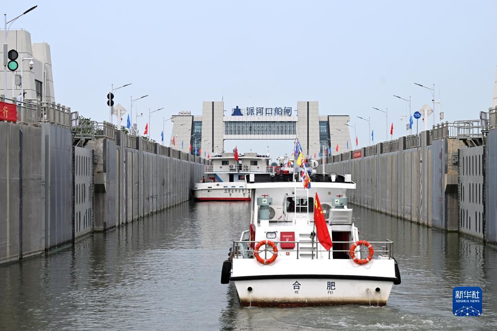 當(dāng)日,在安徽省合肥市派河口水上服務(wù)區(qū),隨著汽笛鳴響,一艘艘輪船從這里緩緩駛出,向北駛向淮河,標(biāo)志著引江濟(jì)淮工程航道江淮溝通段開啟試運(yùn)行。