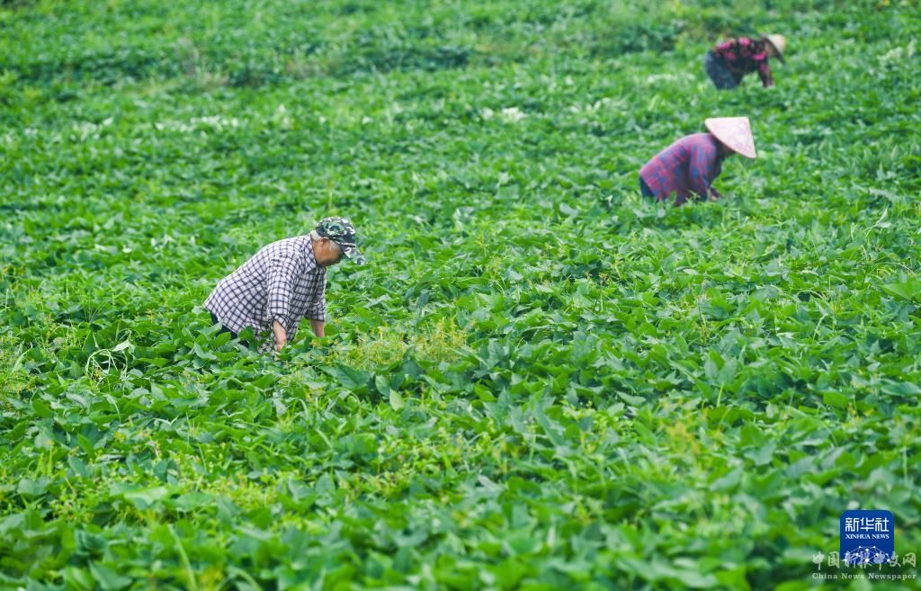 8月16日,村民在重慶市石柱土家族自治縣王家鄉(xiāng)光華村紅薯地里勞作。