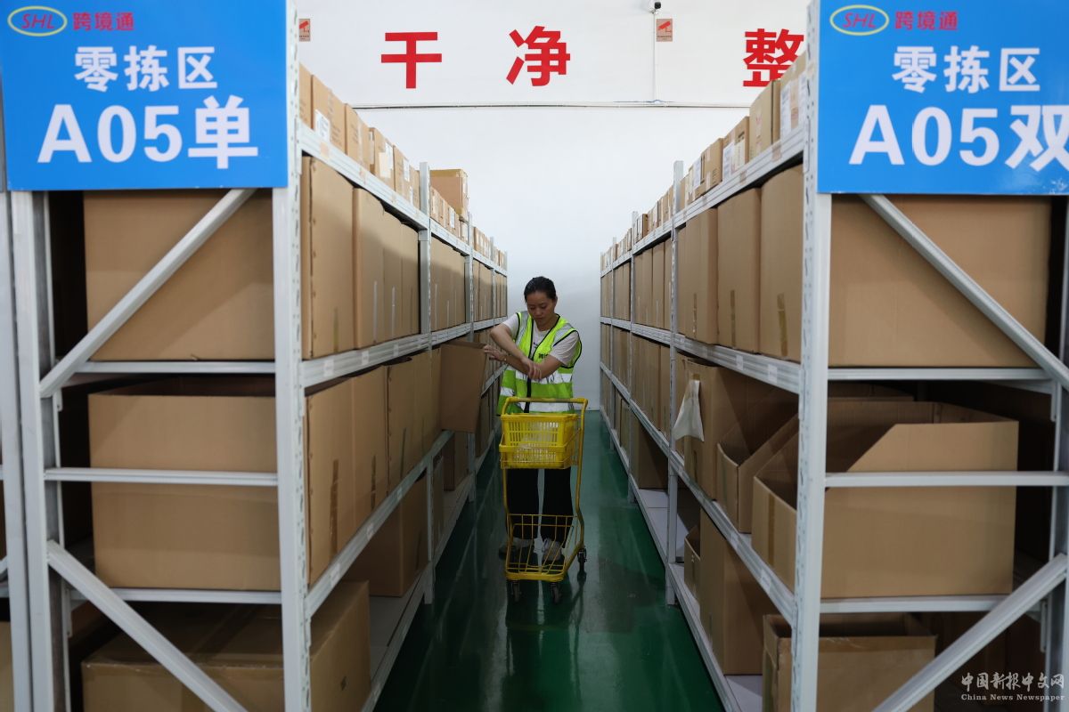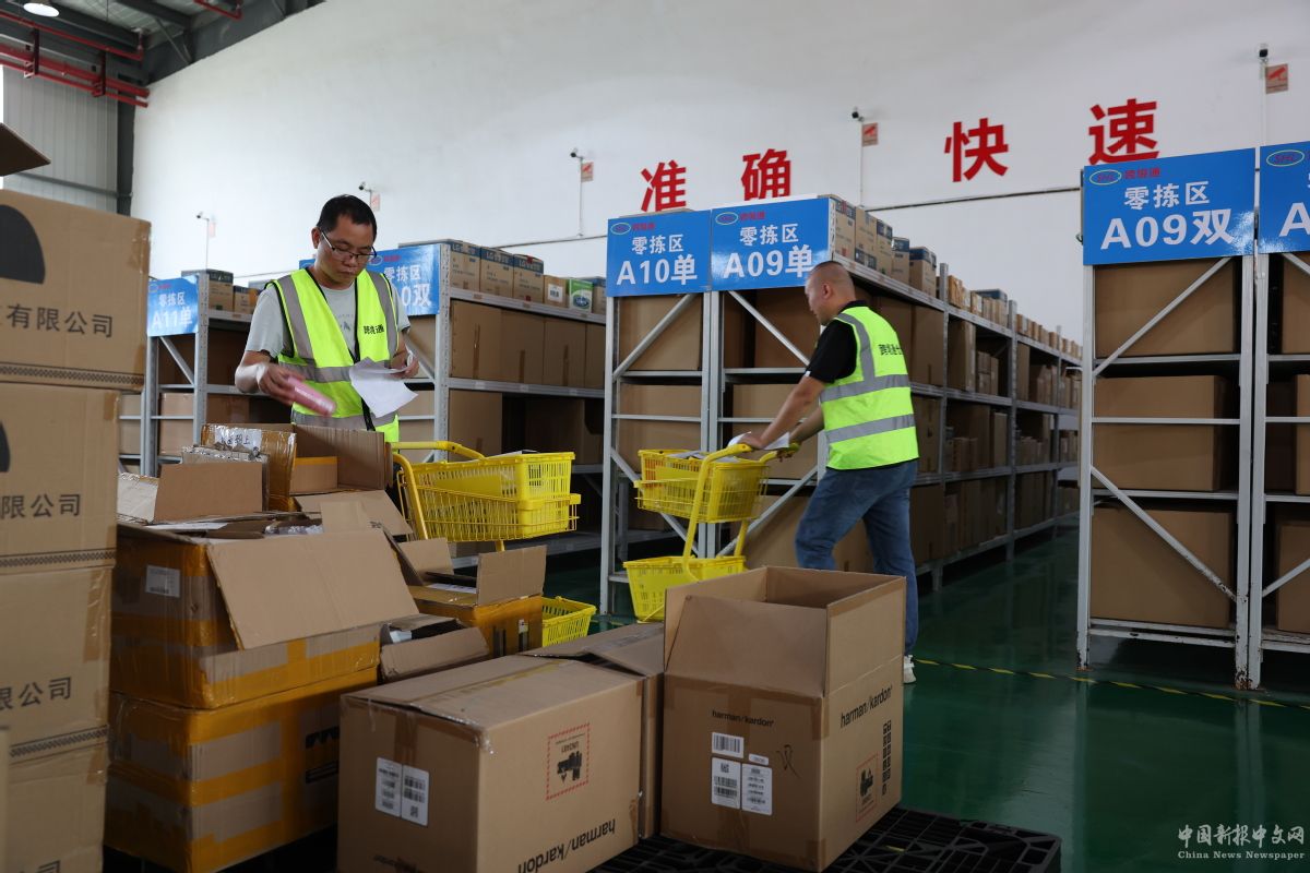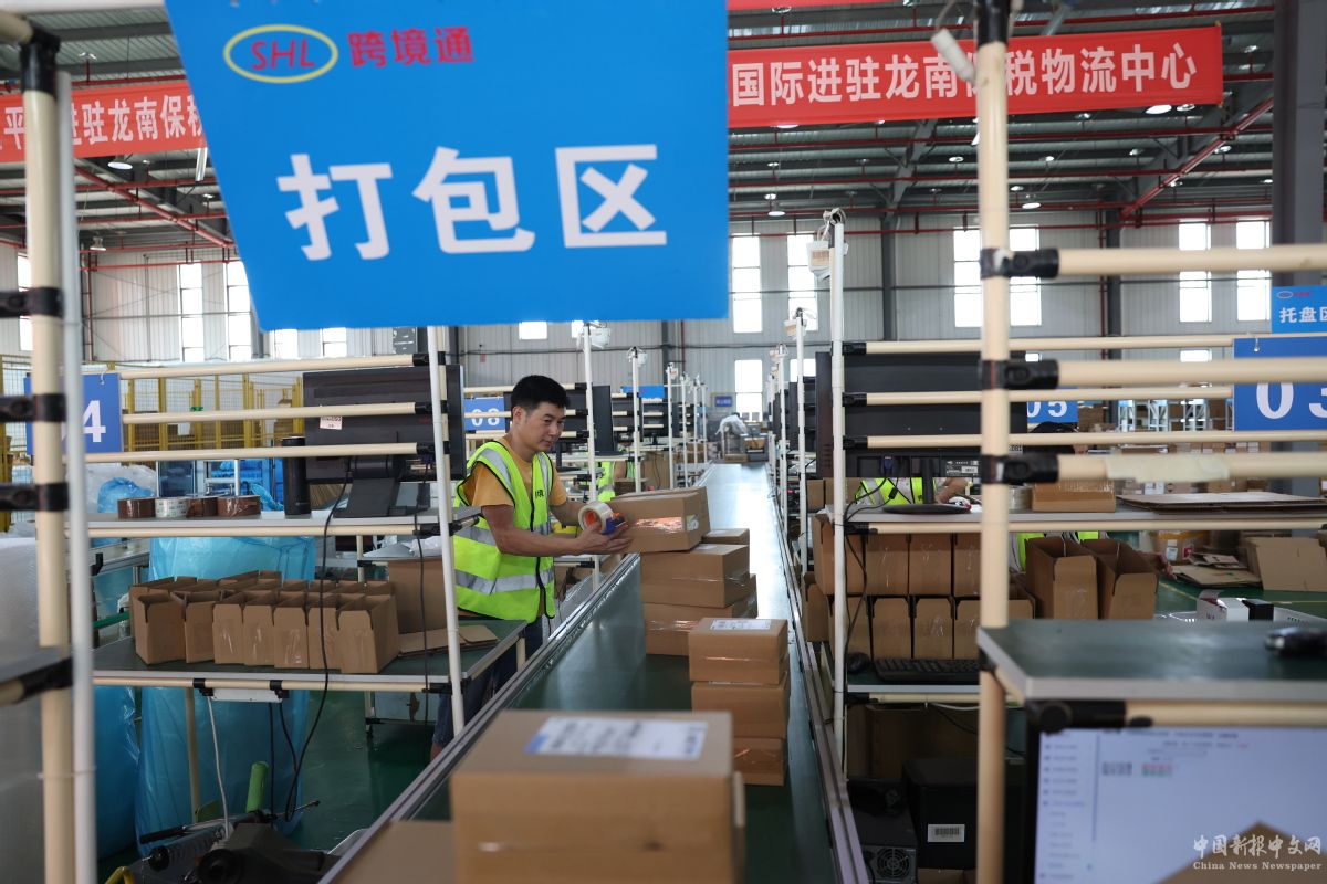 中國(guó)日?qǐng)?bào)8月17日電 (記者 馮永斌)2023年8月16日,記者走進(jìn)位于江西省龍南市保稅物流中心(B型)內(nèi)的港通跨境倉庫,工人們正在忙碌地打包倉庫里來自全球各地的商品。