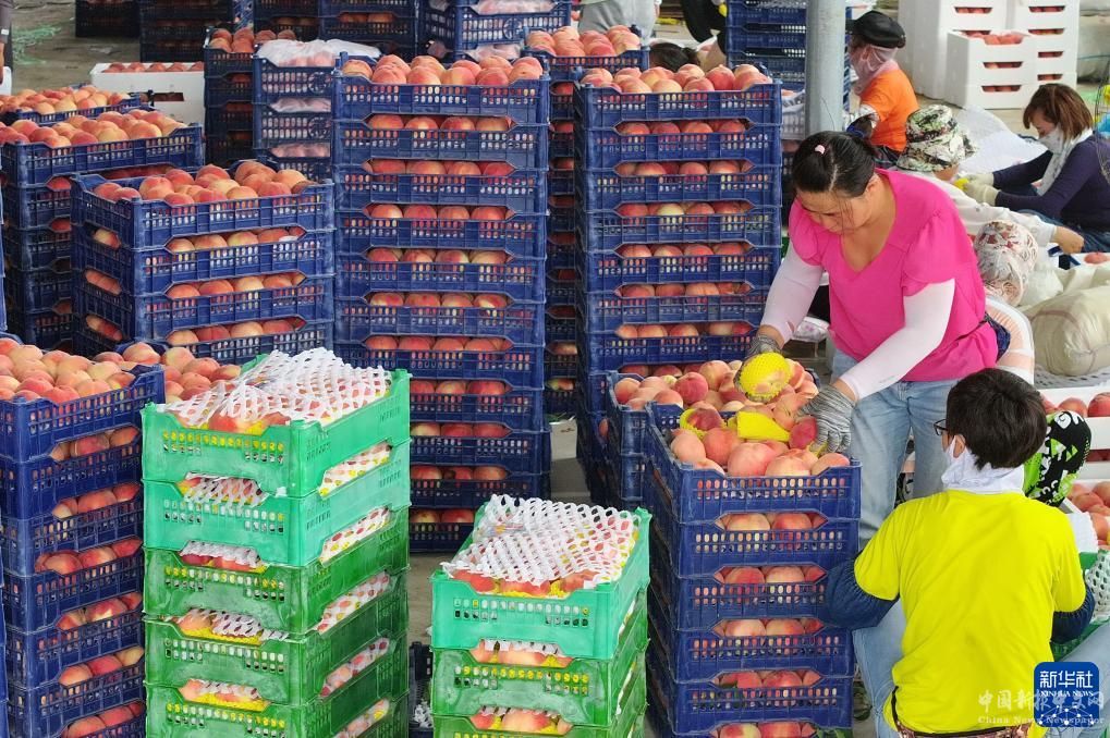 8月21日,唐山市豐潤(rùn)區(qū)左家塢鎮(zhèn)一家鮮桃種植合作社的社員在分揀收獲的鮮桃。