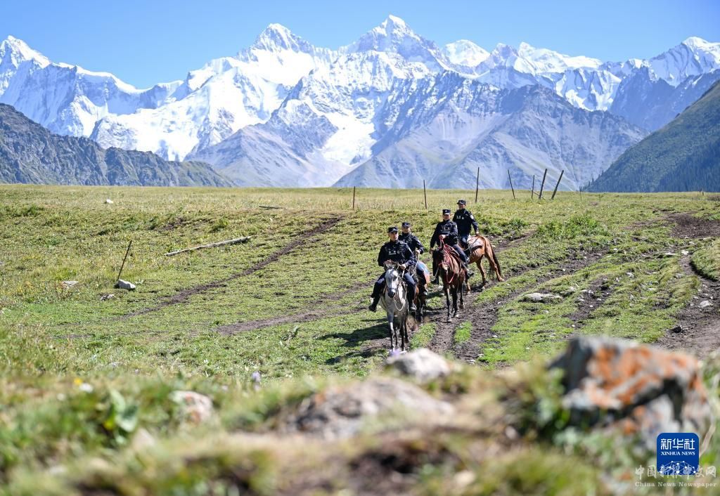 民警在夏塔古道對(duì)山口、河流等重點(diǎn)區(qū)域巡邏踏查(8月19日攝)。