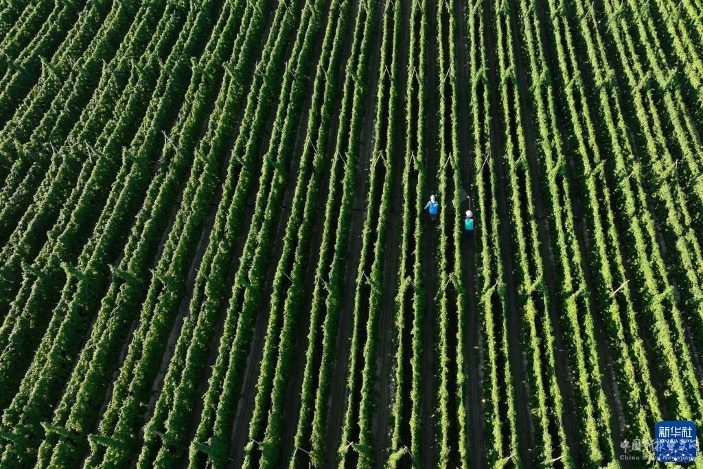 8月22日,吳橋縣于集鎮(zhèn)灣西王村村民在進行淮山藥田間管理(無人機照片)。