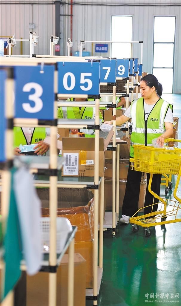 贛州龍南保稅物流中心(B型)內(nèi)的港通跨境倉庫內(nèi),工人在打包來自全球各地的商品。近年來,當?shù)卮罅Πl(fā)展口岸經(jīng)濟,積極推動跨境電子商務(wù)發(fā)展。