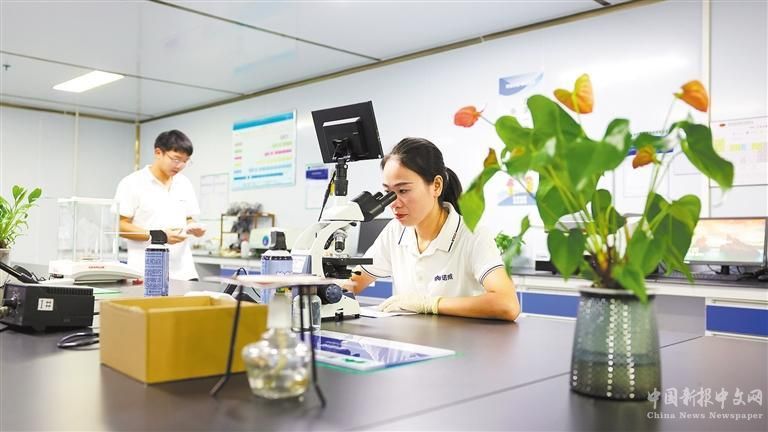 贛州諾威新能源有限公司,實驗員在做新材料試驗。這家從廣東引進的鋰電池移動電源細分領(lǐng)域龍頭企業(yè),自主研發(fā)出智能化數(shù)據(jù)收集系統(tǒng),可根據(jù)市場開發(fā)專用配方,降低材料成本。