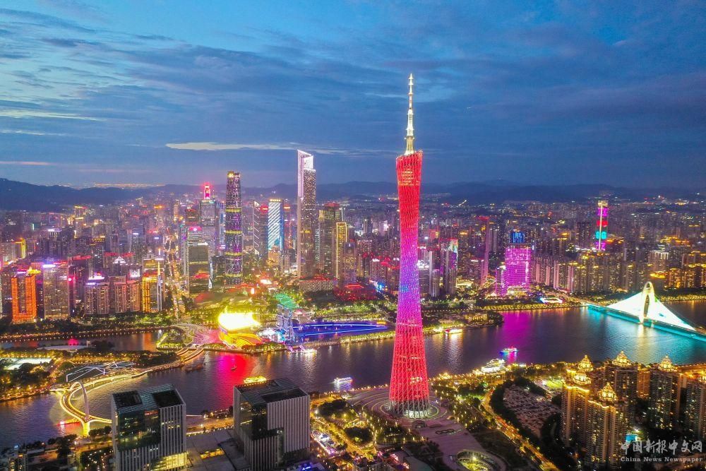 夜幕下的珠江兩岸流光溢彩(2023年6月10日攝,無人機照片)。新華社記者 劉大偉 攝
