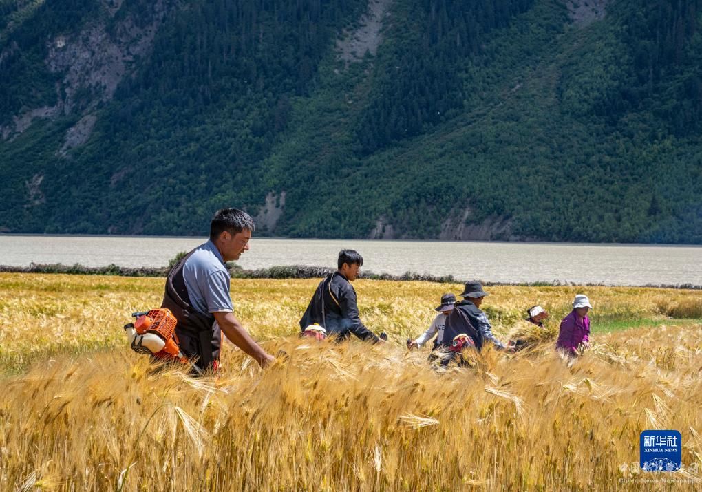 西藏昌都市八宿縣然烏鎮(zhèn)瓦巴村村民在收割青稞(9月4日攝)。