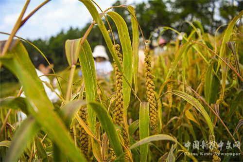 2023年9月5日,在貴州省凱里市三棵樹鎮(zhèn)格沖村,一公司在油茶基地種植小米豐收。(楊仁海 攝)