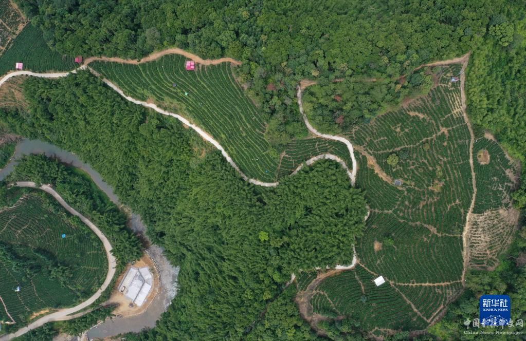 這是梧州市蒼梧縣六堡鎮(zhèn)塘坪村的茶園(無(wú)人機(jī)照片,9月6日攝)。