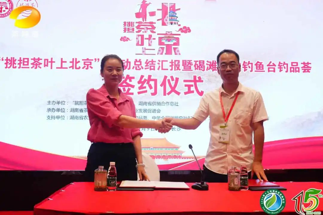 茶產(chǎn)業(yè)是湖南的優(yōu)勢產(chǎn)業(yè)、特色產(chǎn)業(yè)、富民產(chǎn)業(yè)、希望產(chǎn)業(yè),近年來,在省委省政府的重視支持下,湖南茶產(chǎn)業(yè)強勢發(fā)展,呈現(xiàn)出“三湘四水五彩茶香”發(fā)展格局。碣灘茶,得名于唐,明清時代稱它為“辰州碣灘茶”,產(chǎn)自湖南武陵山沅水江畔的沅陵碣灘山區(qū),其形、色、香、味均十分獨特,品質(zhì)優(yōu)異,唐代就是貢茶并傳至日本,也是本次活動冠名品牌。經(jīng)過前期對接,在促進會引導(dǎo)下,釣魚臺釣品薈、中央黨校學(xué)員茶室負責(zé)人、中視購物、央企采購代表、832平臺湖南區(qū)域負責(zé)人、北京優(yōu)農(nóng)展館主任徐曉南等將先后與相關(guān)企業(yè)溝通、交流并遴選入駐企業(yè)及產(chǎn)品。會上,舉行了碣灘茶進釣魚臺簽約儀式。