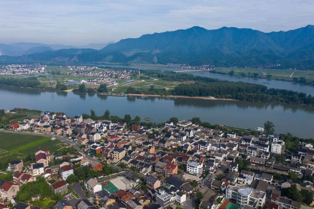 ↑富春江畔的東梓關(guān)村。