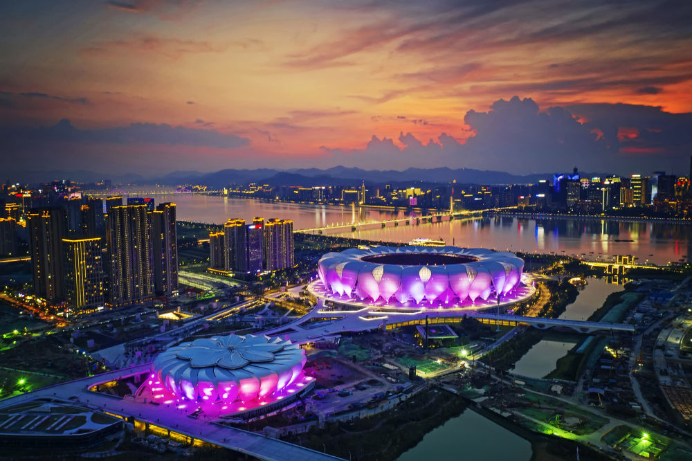 ↑杭州奧體中心場館群。新華社發(fā)(杭州亞組委供圖)
