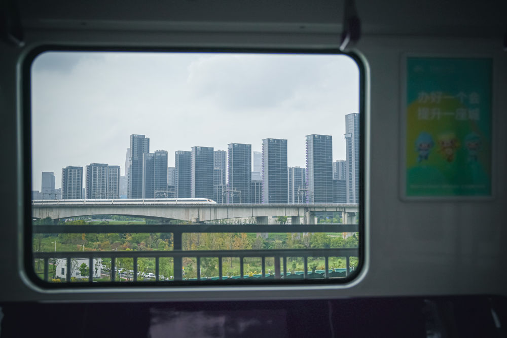 ↑杭州地鐵“亞運號”專列經(jīng)過亞運村。