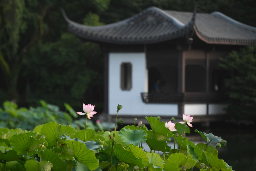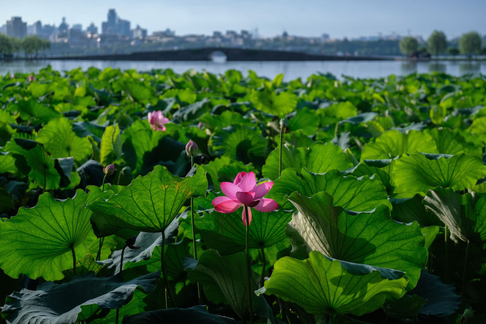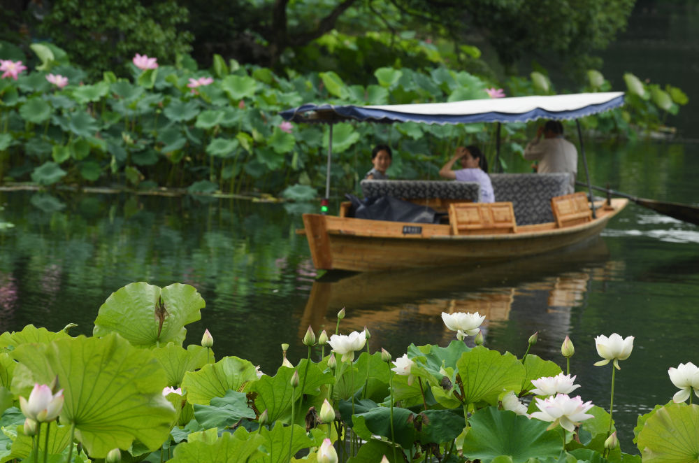 ↑西湖景區(qū)荷花盛開。
