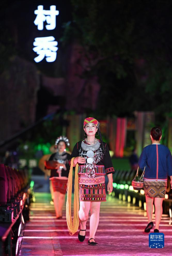 當(dāng)日,海南省五指山市民族時裝“村秀”系列文化活動開幕。鄉(xiāng)鎮(zhèn)居民身著黎族、苗族傳統(tǒng)和創(chuàng)新設(shè)計服飾,向人們展示民族傳統(tǒng)文化的魅力。