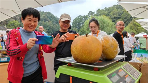 安徽休寧:單個“梨王”三斤重!游人打卡“梨”不開