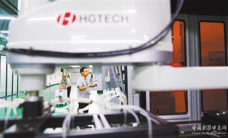 華工科技激光高端裝備制造車(chē)間,技術(shù)人員在調(diào)試超薄玻璃激光切割裝備。華工科技成功制造出我國(guó)首臺(tái)核心部件100%國(guó)產(chǎn)化的高端晶圓激光切割設(shè)備,展示了中國(guó)在半導(dǎo)體領(lǐng)域自主創(chuàng)新和發(fā)展的決心。