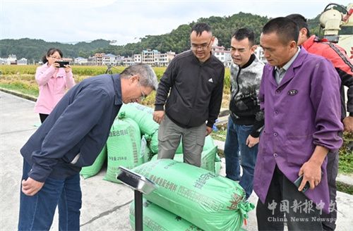 10月8日,湖南省隆回縣羊古坳鎮(zhèn)雷峰村超級雜交水稻高產攻關科研基地,農業(yè)專家組一行對該基地示范片栽培的“甬優(yōu)1538”進行現(xiàn)場測產,實測平均畝產1112.05公斤,超過畝產1100公斤目標產量。