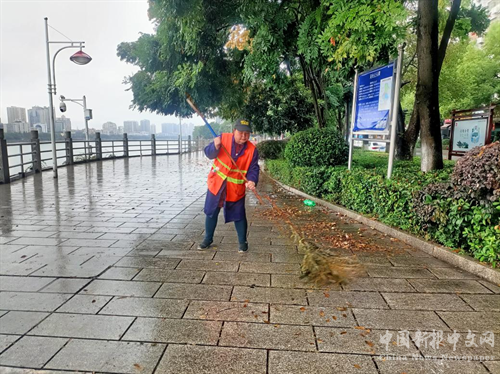 文明創(chuàng)建|珠暉區(qū):雨后落葉飄滿街 環(huán)衛(wèi)工人清理忙