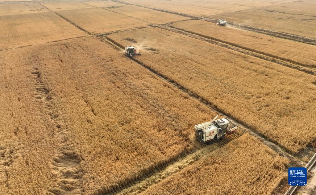金秋時(shí)節(jié),遼寧省阜新市彰武縣大冷鎮(zhèn)上三家子村的稻田里機(jī)聲隆隆,一片豐收的繁忙景象。