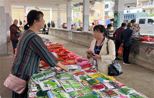 10月24日,第五次全國(guó)經(jīng)濟(jì)普查湖南省隆回縣金石橋鎮(zhèn)黃金井村經(jīng)濟(jì)普查員張春珍正在黃金井農(nóng)貿(mào)市場(chǎng)對(duì)個(gè)體戶進(jìn)行普查登記。