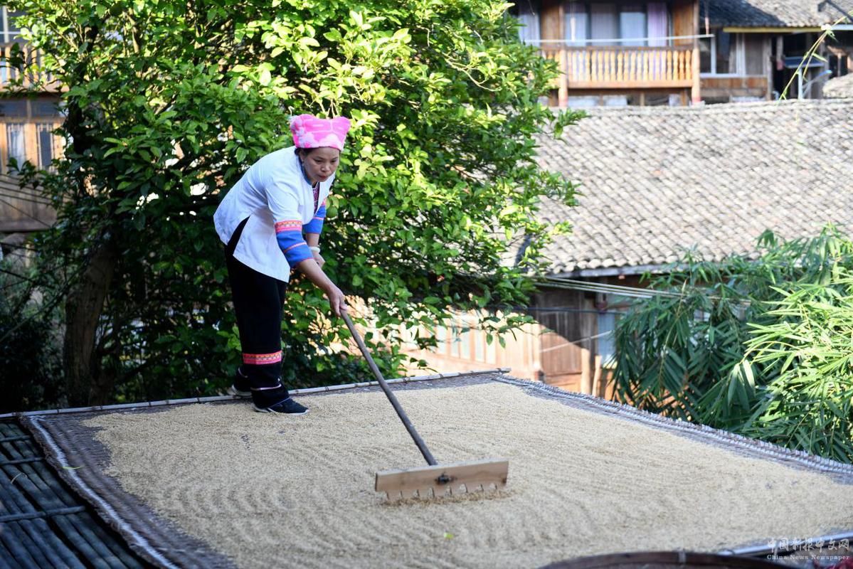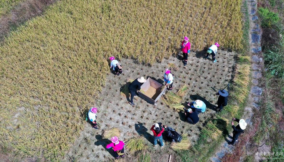 連日來,廣西桂林市龍勝各族自治縣龍脊梯田的水稻進(jìn)入收獲期,村民們搶抓晴好天氣,進(jìn)行收割、脫粒、搬運(yùn)、晾曬。