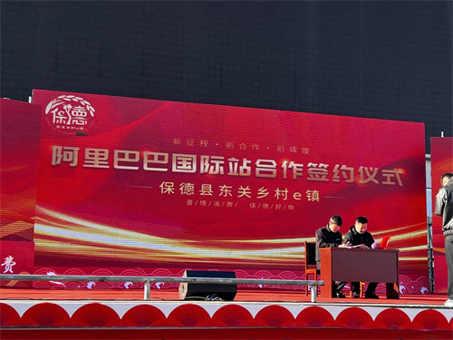 在參會領(lǐng)導(dǎo)和嘉賓的見證下,副縣長王宏喜、縣工業(yè)和信息化局副局長馬玉清及東關(guān)鄉(xiāng)村e鎮(zhèn)負(fù)責(zé)人共同點(diǎn)亮活動了保德縣東關(guān)鄉(xiāng)村e鎮(zhèn)線上公共服務(wù)平臺啟動球,希望通過線上線下聯(lián)合并舉的運(yùn)營模式,讓保德電商企業(yè)保持積極上揚(yáng)的發(fā)展態(tài)勢。保德縣東關(guān)鄉(xiāng)村e鎮(zhèn)先后與三晉消費(fèi)幫扶超市、阿里巴巴國際站簽訂合作協(xié)議,并舉行戰(zhàn)略合作平臺揭牌儀式。